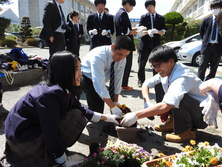 午後からは、校内募金で購入した花苗の贈呈と定植を今年も行いました。また、防災庁舎で献花と黙祷をささげ、最後に役場を訪問し、震災復興寄付金として今回は佐藤町長へお渡しいたしました。