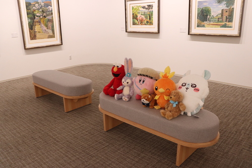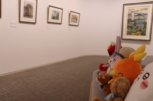 令和7年度「図書館でぬいぐるみお泊り会」内藤秀因水彩画記念館見学の様子
