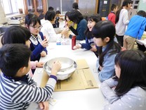第1回目で植えたミニトマトときゅうりを収穫しました。今年はミニトマトの育成状況がよく、たくさんのミニトマトを収穫できました。収穫したばかりのミニトマトを使ってミニトマトゼリーを作りました。どの班も協力して上手にできていました。