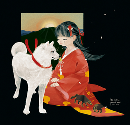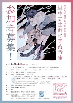 本展では、出羽三山や大山のめっけ犬など庄内の伝説を題材にした作品や、オリジナルイラスト、小説の装画など、約30点の作品をご紹介します。