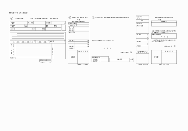 第26条 法第348条第2項本文の規定により、同項第3号、第9号、第10号、第11号の2、第11号の3又は第12号に掲げる固定資産について、固定資産税の非課税の適用を認めたときは、固定資産税非課税通知書(様式第103号)により申告者に通知するものとする。