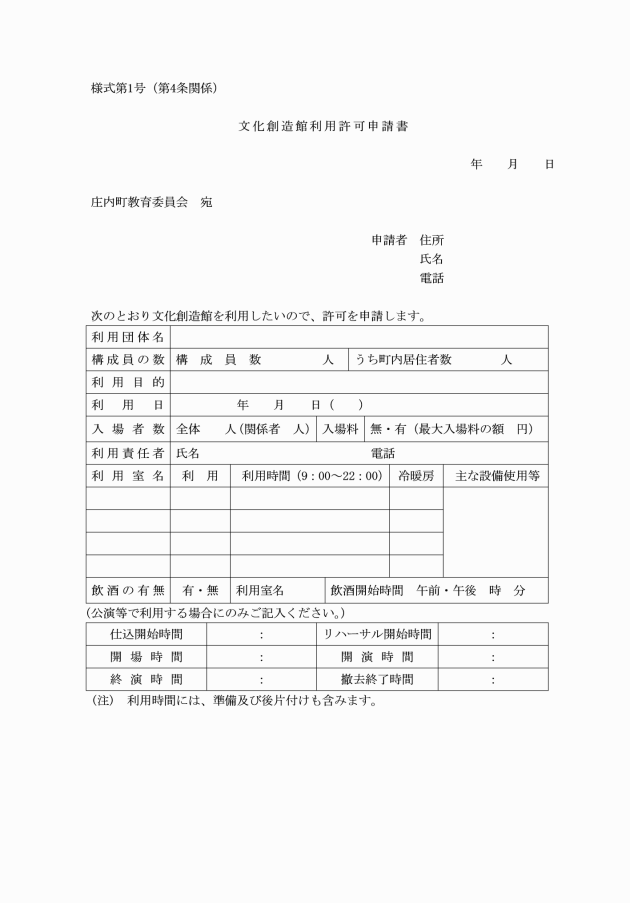庄内町文化創造館設置及び管理条例施行規則(平成17年庄内町教育委員会規則第29号)の全部を改正する。